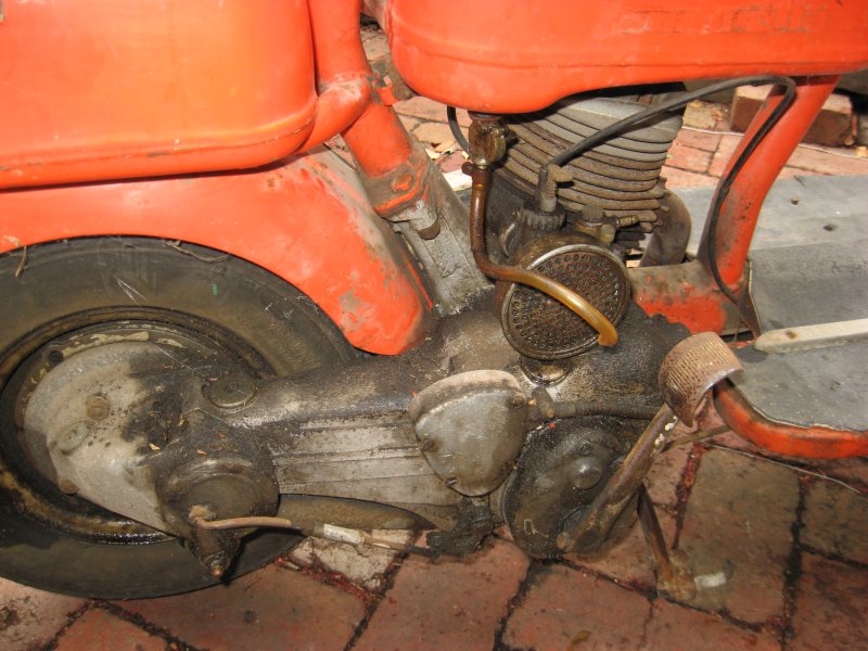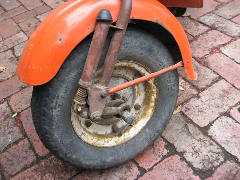 Lambretta backwards like a wheelbarrow, I hit a small step and damaged the