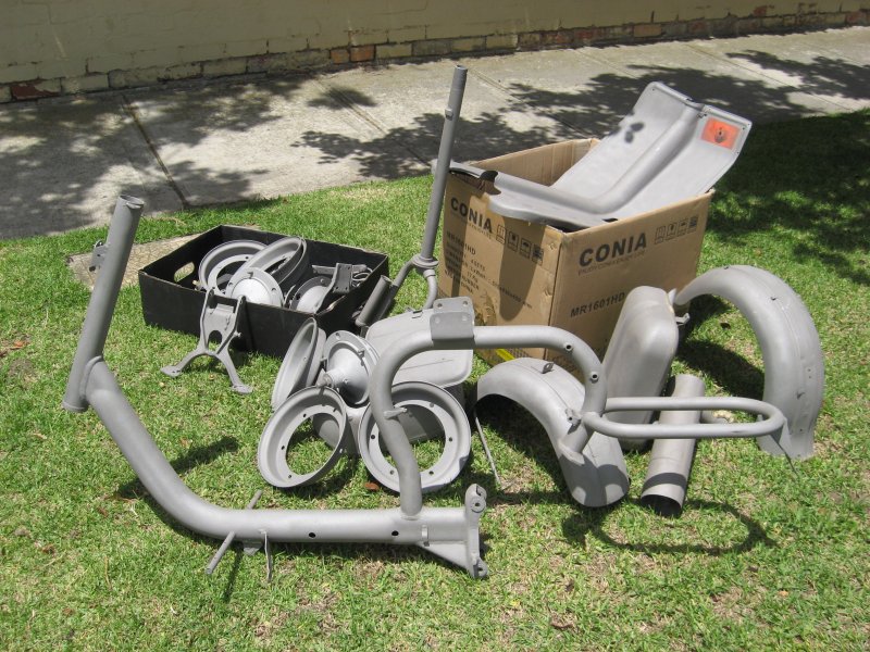 parts for the front end to arrive from Italy. The rear mudguard had to be