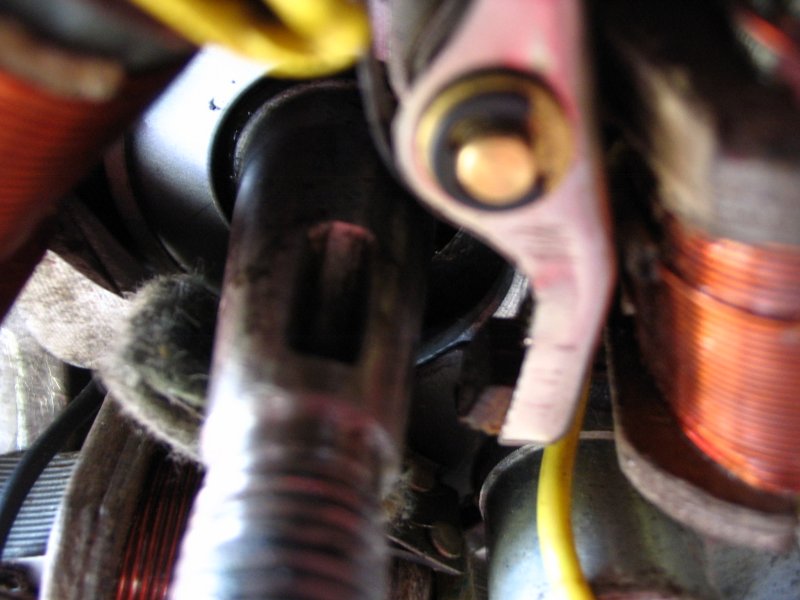 | Here is another example of what type of damage I find on these Vespa from Asia: This flywheel was removed by forcing it out with screwdrivers or other implements placed between the flywheel and the crankcase |