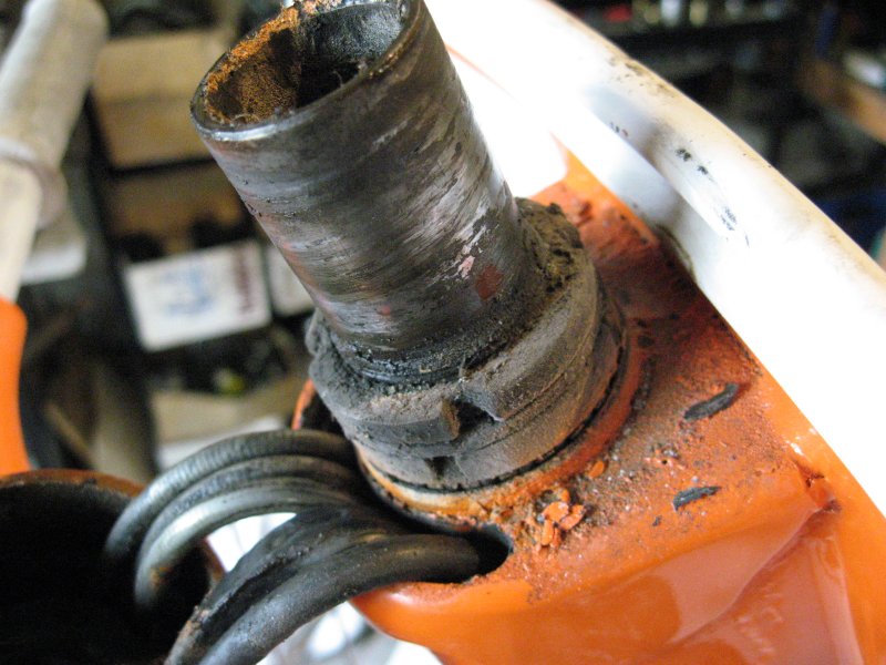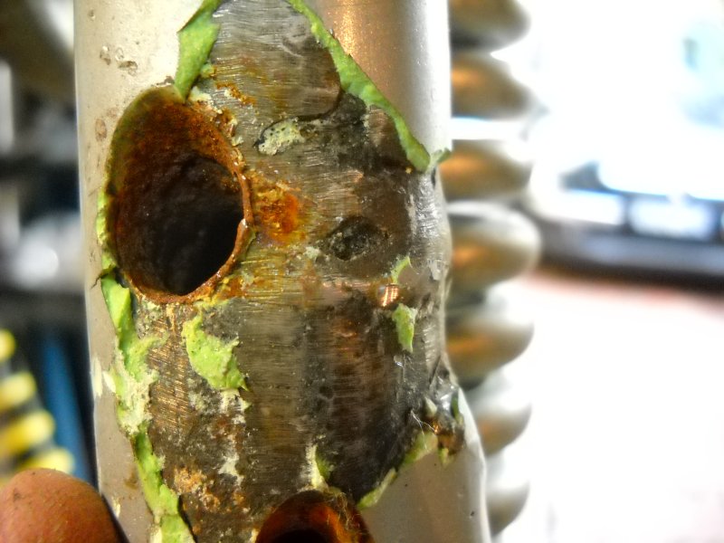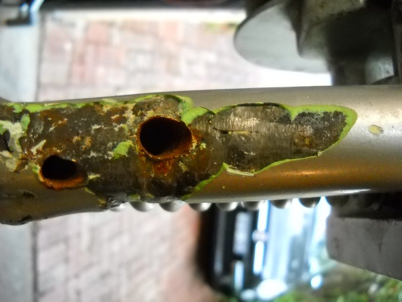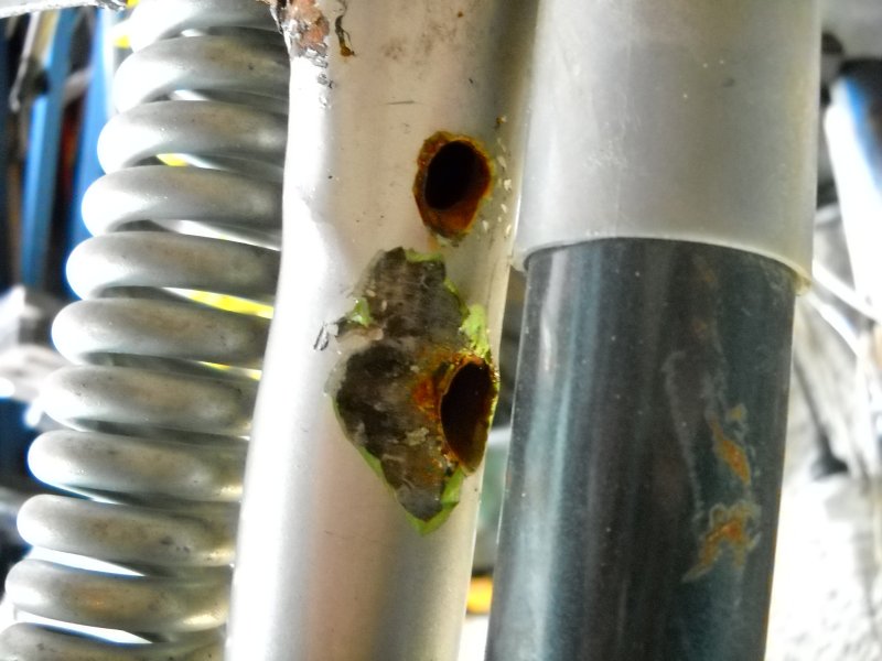 This time, the new piece of water pipe was inserted at the top curve of the forks without considering that this is probably the most stressed part of the whole bike. It only took a bit larger road bump to snap the home made extension. The rider was lucky that the whole pipe did not break off causing serious or even fatal injuries.