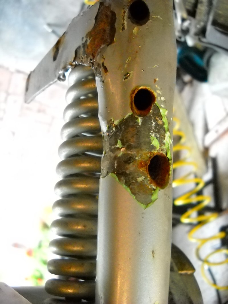 solution? Easy, cut the fork's leg and weld a piece of pipe between the