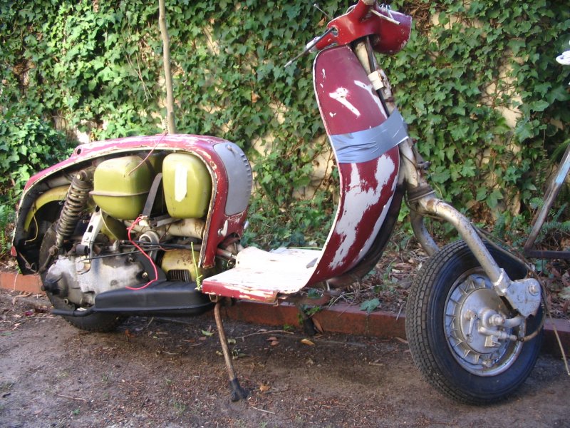 Well...Just because I love Vespas it doesn't mean I don't like Lambrettas. I learned to drive a scooter on a 125 LI and, after all these years, I still have that burning passion consuming me. I therefore decided to buy the closest available thing to a Lambretta and, after a long search I found this '78 Spanish Serveta LI150 which, over the next few months, I intend restore to its original condition but using a different colour scheme. Here are the pictures of the scooter as it arrived at my workshop... it looks like it is going to take a lot of tender loving care. |