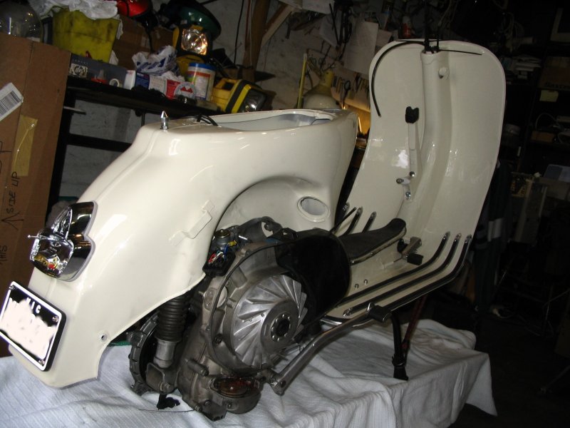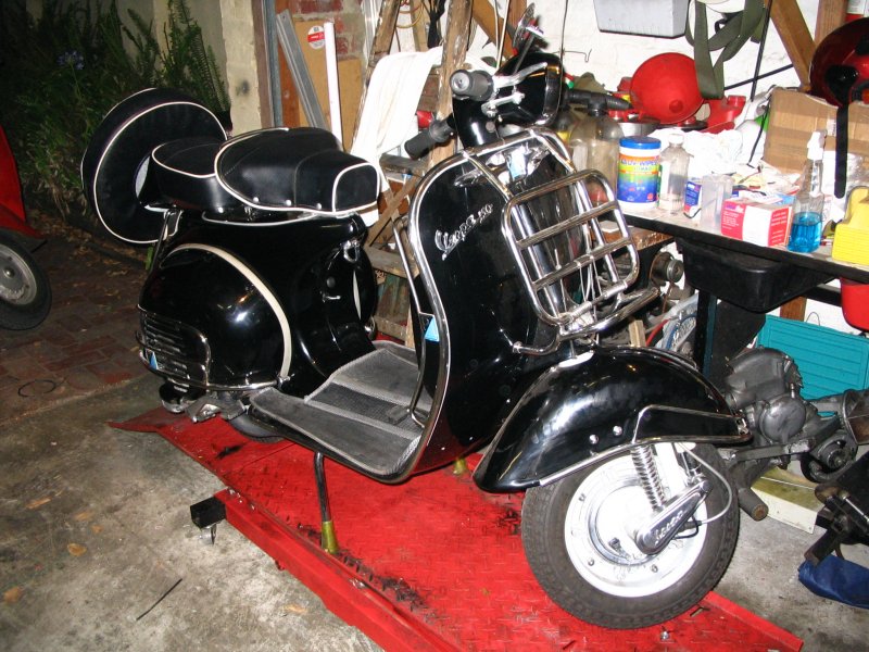 Well! It is now finished! It is no longer a VBB because the frame is from a Sprint. The handlebars are from a ET3 Primavera but, finally, we have a very good looking and very safe to ride Vespa propelled by a new PX200 engine.